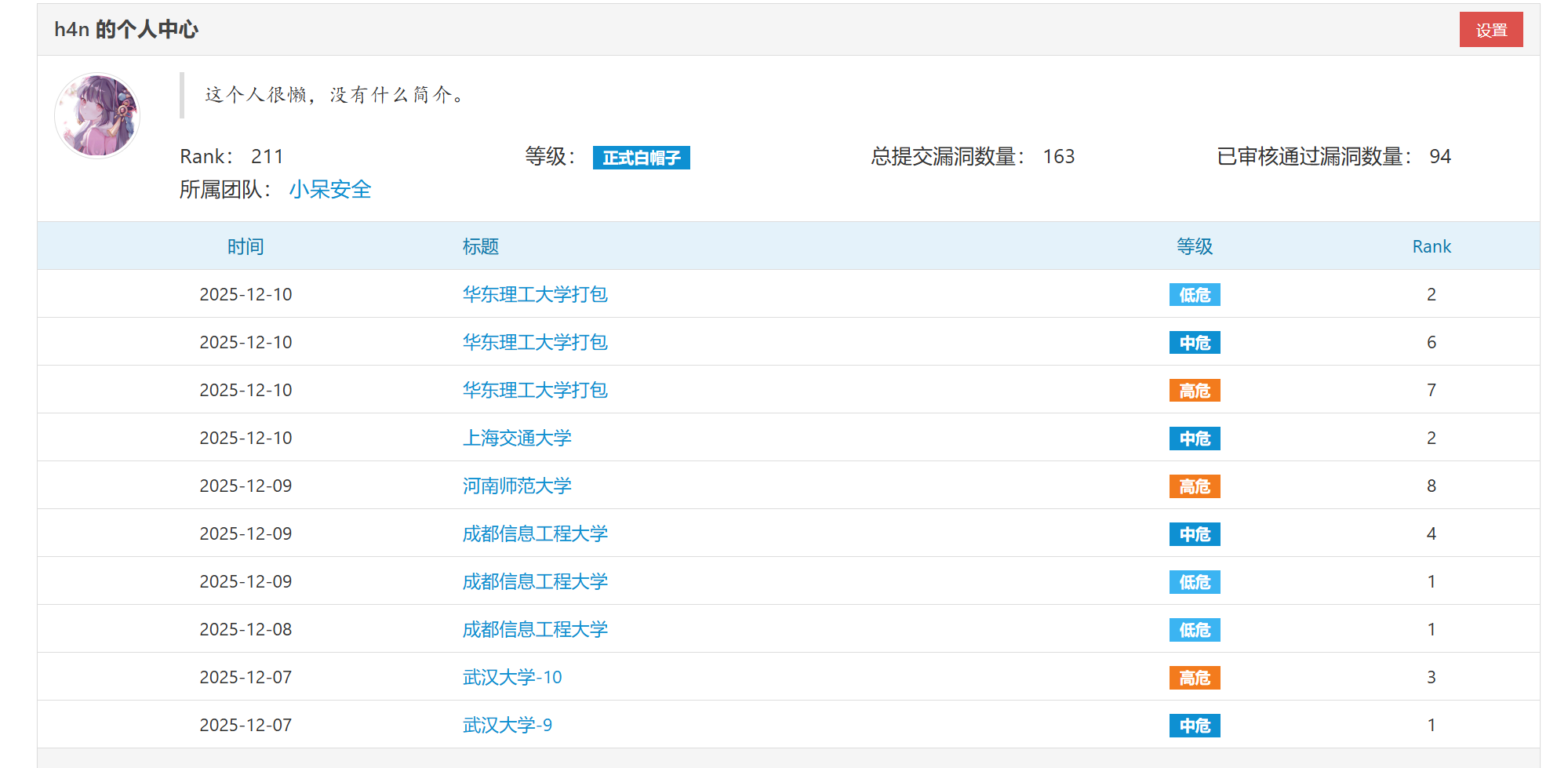 一个中危只给100可能系统比较普通吧….挖了几百感觉没有众测好挖又没众测爽…就放弃了